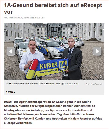 Apotheke Adhoc: "1A-Gesund will über das Internet Online-Bestellungen taggleich ausliefern."